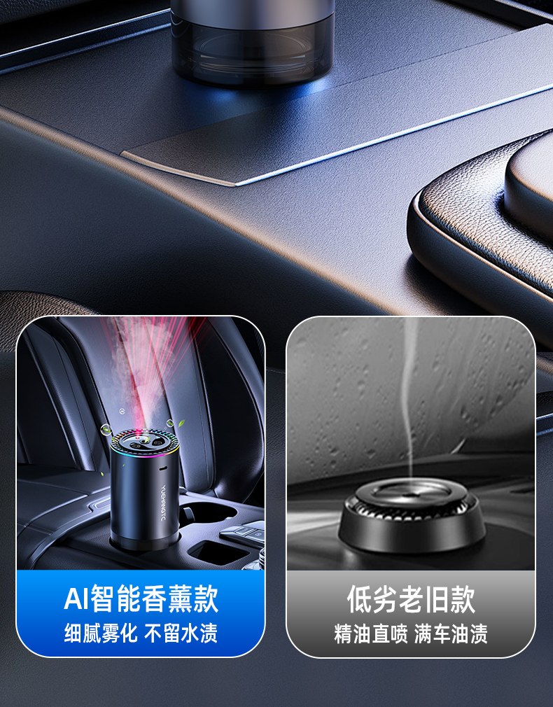 2. Perbandingan (model aromaterapi cerdas AI dengan atomisasi halus tanpa meninggalkan noda air) (model lama lebih rendah dengan minyak esensial yang disemprotkan langsung ke mobil yang terkena noda minyak)